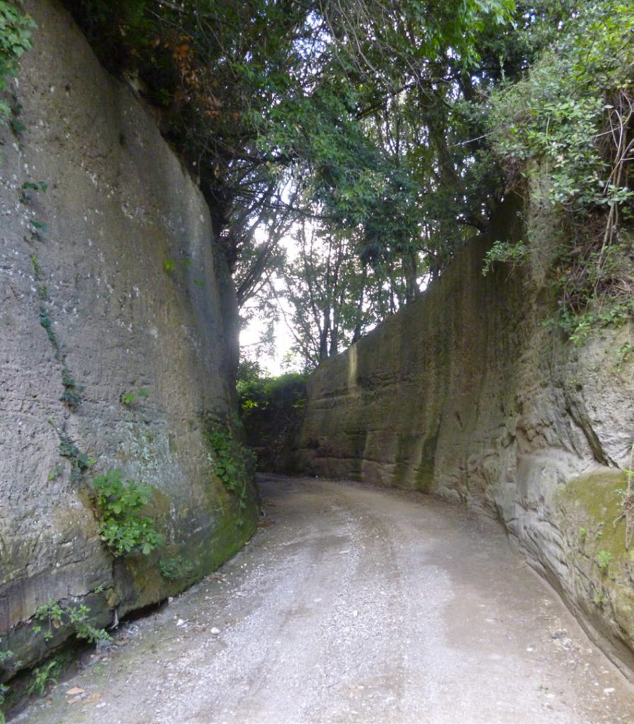 Superata Tuscania, dopo circa 1,7 Km, oltrepassato il rudere in località Polledrara, la Quilici annota come la Clodia si diriga attraverso il Fosso Caprino, per ricalcarlo nel suo corso con un “antica tagliata viaria la quale permetteva di oltrepassare il fosso Pian di Vico”. Superato il fosso, ad ovest, attraverso le zone di Polledrara e Sterpaglia, “appare molto evidente un taglio artificiale, lungo mt. 400 e profondo m.20 circa, inciso nel terreno e recentemente riaperto al transito da una carrareccia”. La strada quindi (Gazzetti 1985) perveniva a Canino, ricalcando, almeno per un tratto, il tracciato dell’attuale provinciale: “l’analisi delle foto aeree eseguite dalla RAF nel 1944 permette di individuare con sufficiente chiarezza un tratto di strada antico” che supera i fossi della Caditella e della Tomba per pervenire, attraverso una tagliata, a Canino. Incitti, in una pianta del 1997, individua il passaggio della Clodia, attraverso una imponente tagliata,
