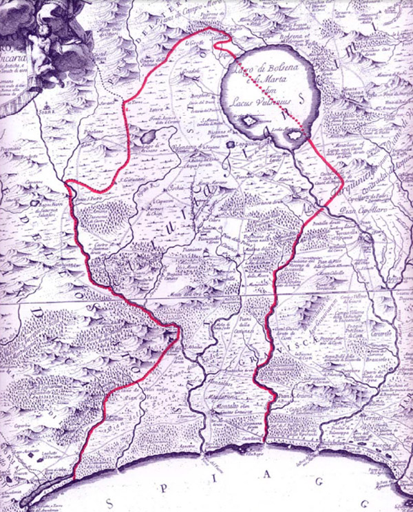 Il Ducato di Castro si estendeva dal mare Tirreno al lago di Bolsena, in una striscia di terra delimitata a sud dal fiume Marta e a nord dal Fiora.